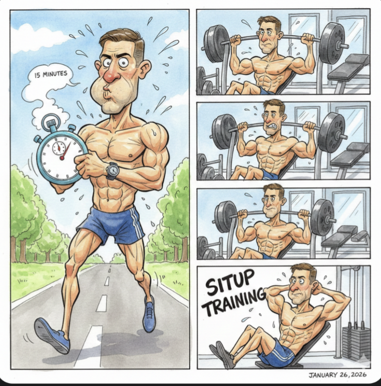 Sit-ups (Bauchmuskeltraining): 3 Sätze à 15-20 Wiederholungen oder bis zur Ermüdung. Konzentriere dich auf das Anspannen der Bauchmuskeln und nicht darauf, Schwung zu holen.